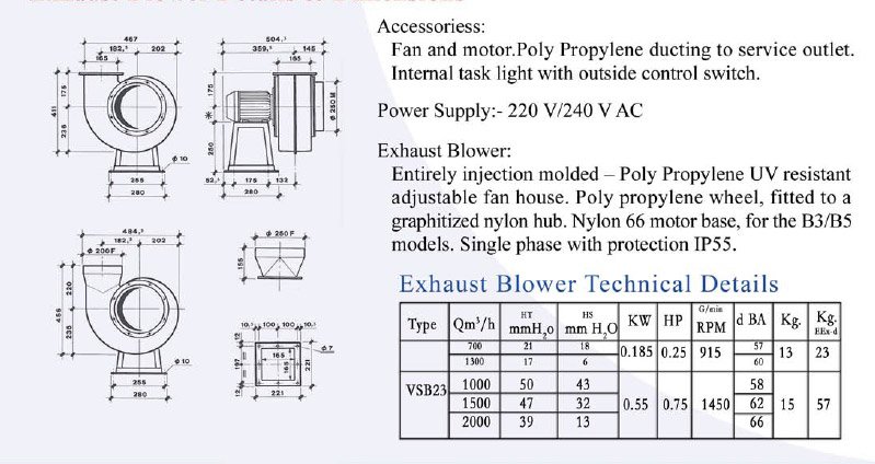 Exhaust Blower Details & Dimensions
